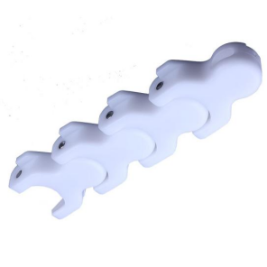 1701TAB Case Conveyor Chains also named as 1701TAB curve case conveyor chain, this type of chain is exceptionally strong, With Side hook feet can runs more stable, Suitable for conveying various items, such as food, drinks, etc